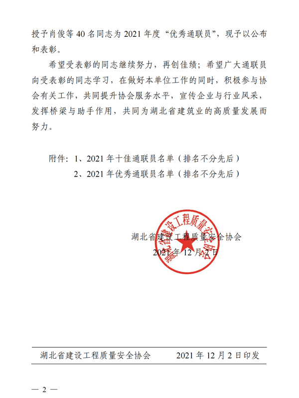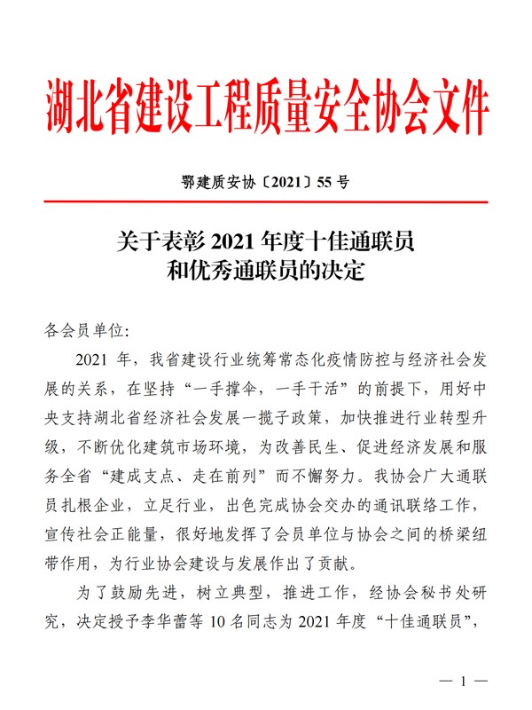 關于表彰2021年度十佳通聯(lián)員和優(yōu)秀通聯(lián)員的決定