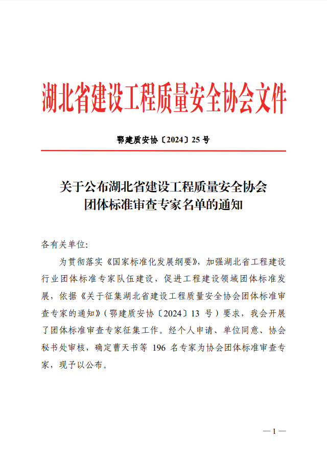 公司總經(jīng)理何宏偉入選湖北省建設(shè)工程質(zhì)量安全協(xié)會團體標準審查專家