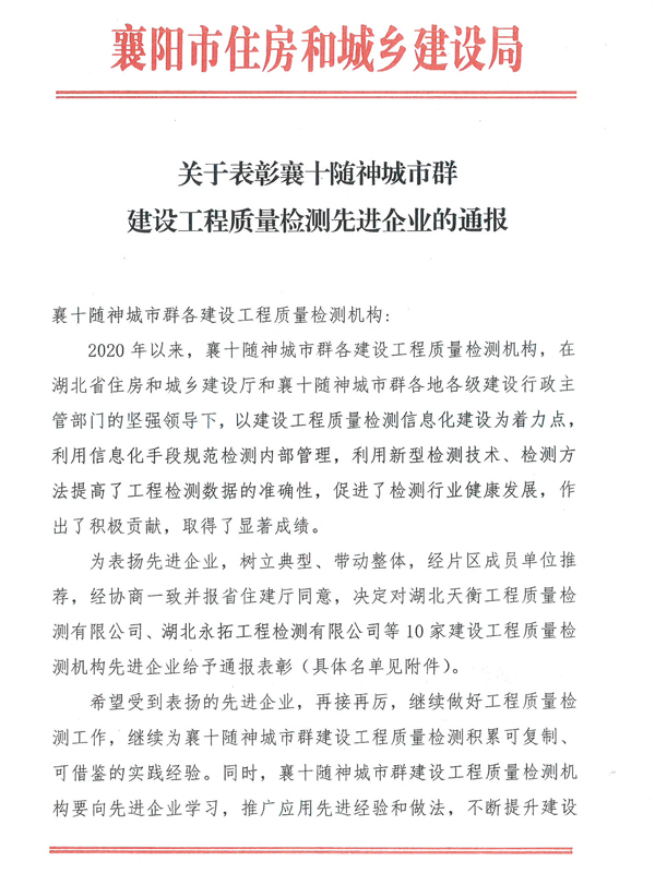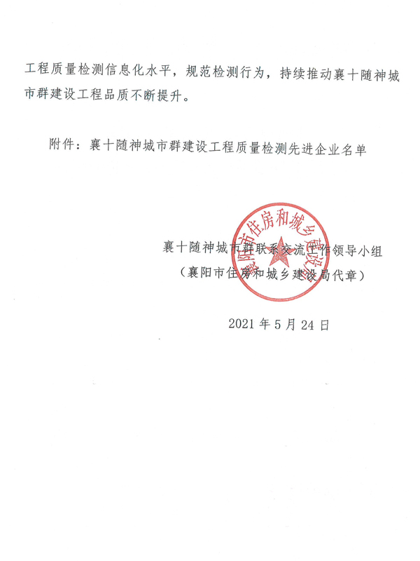 5月28日,由省住建廳、市住建局聯(lián)合主辦,湖北省建筑工程質(zhì)量監(jiān)督檢驗(yàn)測(cè)試中心襄陽(yáng)分公司承辦的“襄十隨神”城市群建設(shè)工程質(zhì)量新型檢測(cè)技術(shù)運(yùn)用經(jīng)驗(yàn)交流觀摩活動(dòng)在襄陽(yáng)舉行。