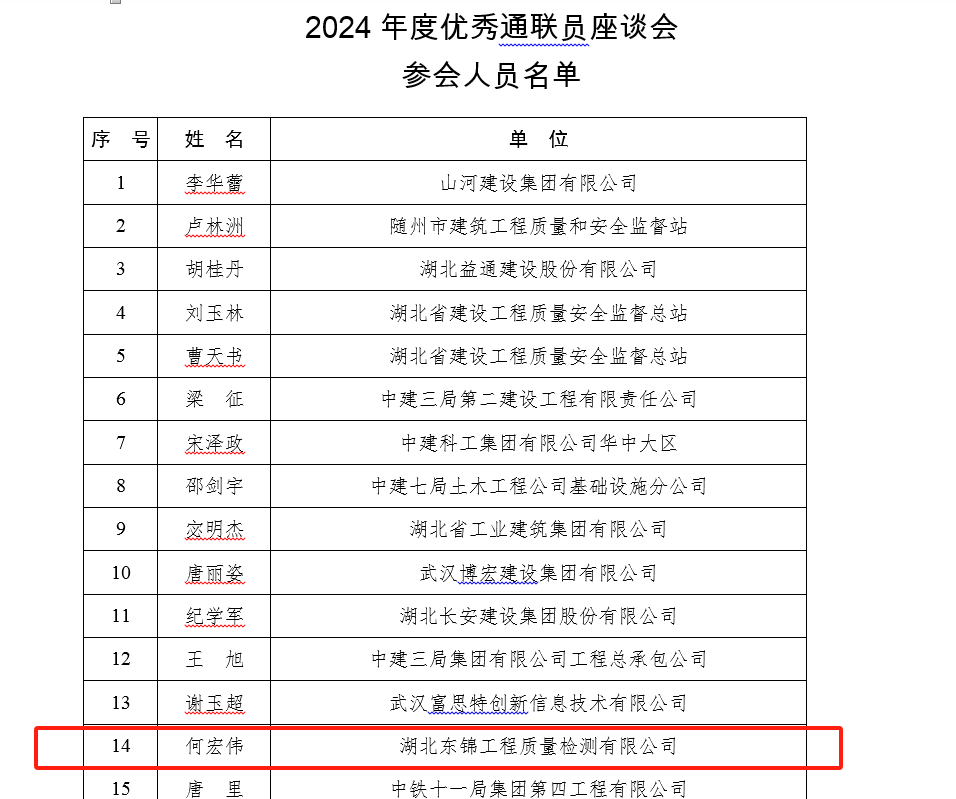 閱讀次數(shù):581 發(fā)布時間:2025年03月01日 2025年2月28日,何總受湖北省建設(shè)工程質(zhì)量安全協(xié)會邀請,參加2024年度優(yōu)秀通聯(lián)員座談會。何總在過去十幾年中,始終遵循省協(xié)會的用稿要求,每年設(shè)定目標(biāo)并制定計劃,堅持不懈地撰寫論文,積極投稿,將自己的所學(xué)和感悟無私分享給同行業(yè)。