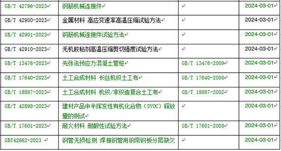 2024年3月1日開始實施的工程建設(shè)規(guī)范標(biāo)準(zhǔn)